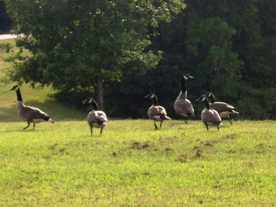 This is the family of geese that lives at our neighbor’s pond. They waddled over to eat in our yard.