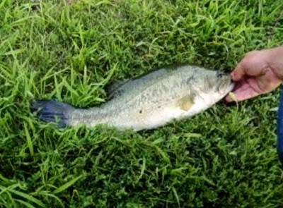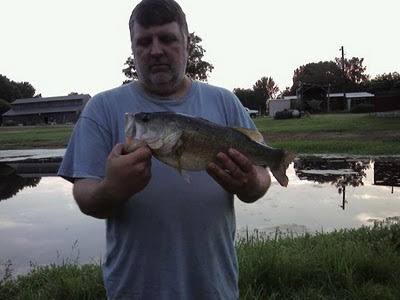 This is the first bass I caught, with a cricket on a cane pole! He broke the line just as I got him to shore. He weighed about 3lbs, but we put him back anyway.