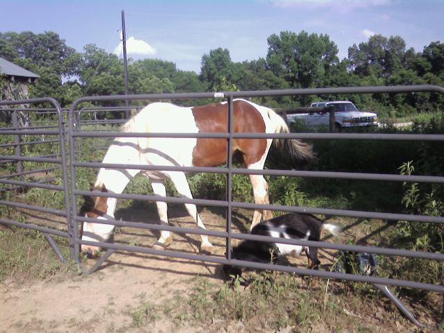 I put Krystal in the round pen so she wouldn’t bother the goats, so instead, Beetlejuice bothered her.