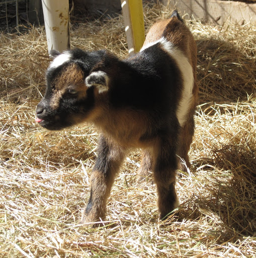 The third and final doe to kid was Clara, and she also gave birth to triplets. This time I got two boys and one girl. Her girl is being retained, as is one of her boys. The reason I am keeping a male from her, though I had not originally intended to, is because he is being bottle fed and I have gotten too attached. He was the runt and he just would not nurse his mom, despite all of our efforts. He is doing well on the bottle, though. I would like to sell her other male intact, because he looks very nice so far (though you obviously can’t tell too much at this age), but also because of the great genetics behind him. I would be willing to sell him as a whether, though. He should be friendly. The available boy is the first pictured. Sorry this goofy thing turns my pictures sideways; I don’t know how to fix it.