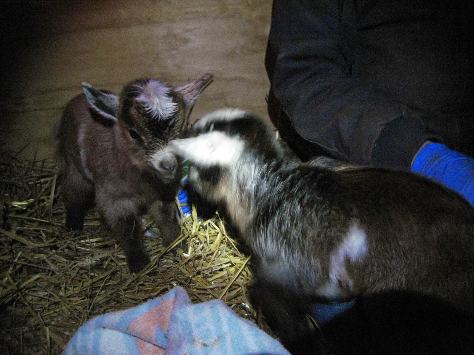 Around 2:00 am Tuesday, January 13th, I called my friend Katelyn, who wanted to be present at the birth, to let her know things were getting serious. She lives about 15-20 minutes away, and before she even arrived at my barn Coraline had delivered her first kid: a strapping little buckling. He came out with gusto. I’m pretty positive that he was the one who kept kicking and seeming to do cartwheels in the womb. Before Coraline’s pregnancy, I had never seen or felt a kid move in the mother’s stomach. Maybe I was just not as observant of that in the past, or maybe her kids were extra active, but it was still a pretty awesome experience. A little creepy, but still cool.